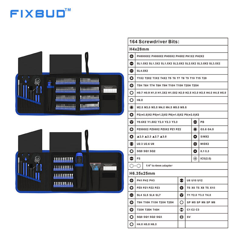 The set includes 120 pcs 4mm CR-V bits and 44 pcs 6.35mm CR-V bits, covering a wide range of common and special screw types used in consumer electronics and household devices. All bits are made from heat-treated CR-V steel to ensure high hardness, wear resistance, and long service life, even under continuous use.
