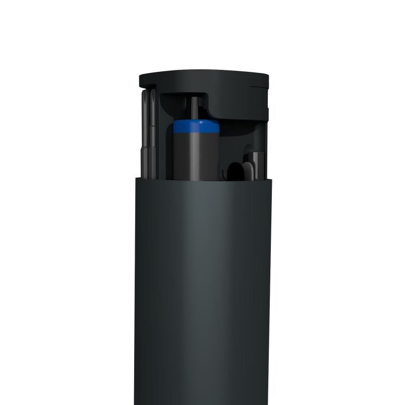 Magnetic Storage Case: Pop-up aluminum alloy case with rotary magnetic bin keeps bits clean and organized.