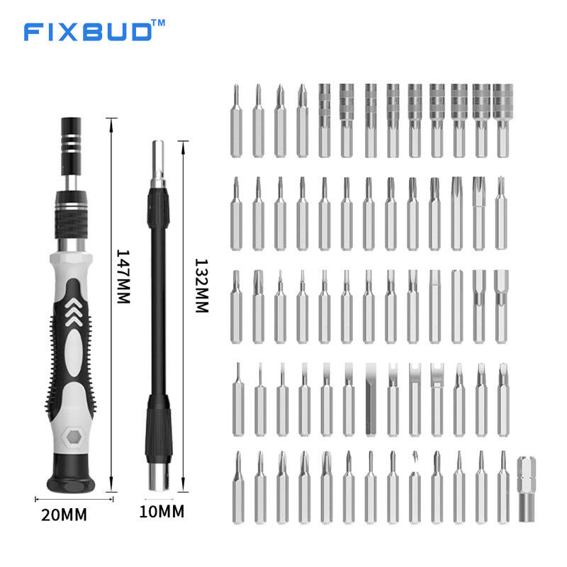 The kit is equipped with an ergonomic screwdriver handle with rotating cap, offering smooth operation and improved control during detailed work. The magnetic bit holder allows fast bit changes and securely holds small screws, while the flexible extension shaft provides easy access to deep or narrow spaces inside electronic devices.